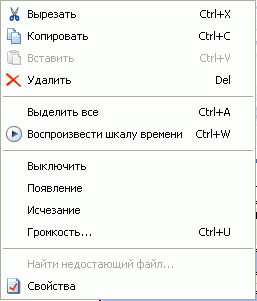 Если щелкнуть по комментарию (аудиотреку) правой кнопкой мыши, появится контекстное меню, в котором перечислены некоторые возможности для работы с комментарием: