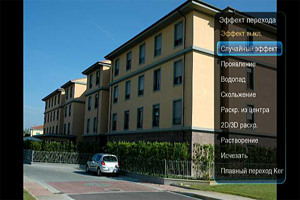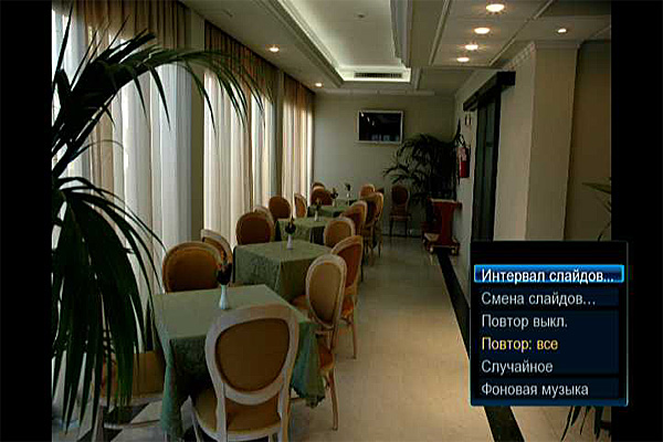 При выборе конкретного изображения загружается слайд-шоу, которое довольно гибко настраивается по кнопке меню.