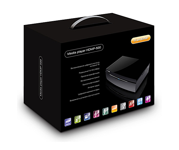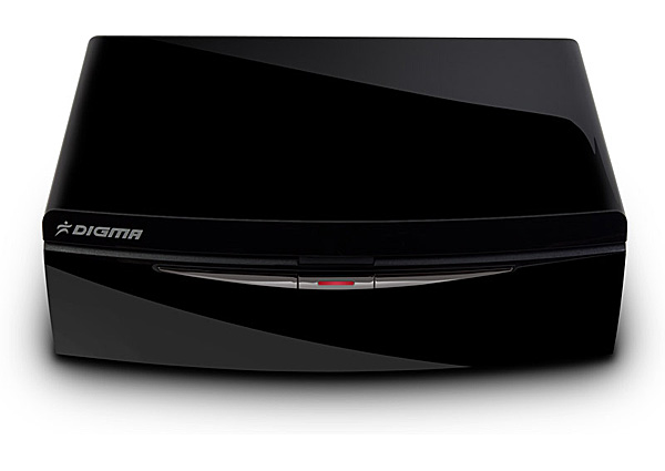 Сегодня рассматриваем медиаплеер Digma HDMP-500. Фирма Digma сейчас выпускает восемь моделей медиаплееров (они их называют медиацентрами). Данная модель - из топовой, 500-й серии (там есть модели 500, 510, 550 и 551). Отличается модель HDMP-500 тем, что позволяет устанавливать внутрь жесткий диск до 2 Тб и умеет записывать входящий AV-сигнал.