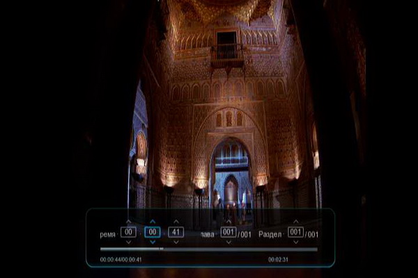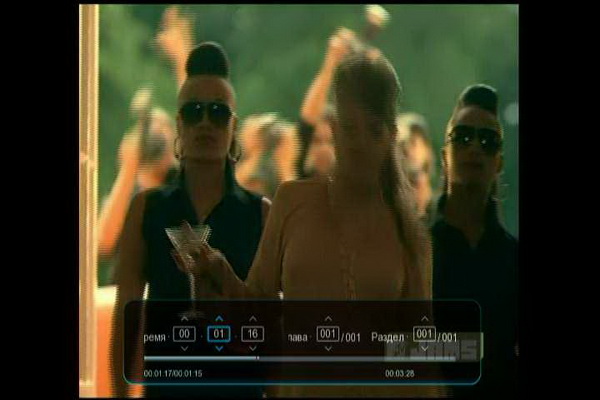 Плеер совершенно примитивный. Во время прослушивания, правда, кнопками центрального джойстика пульта можно перескакивать на определенное число секунд по треку.