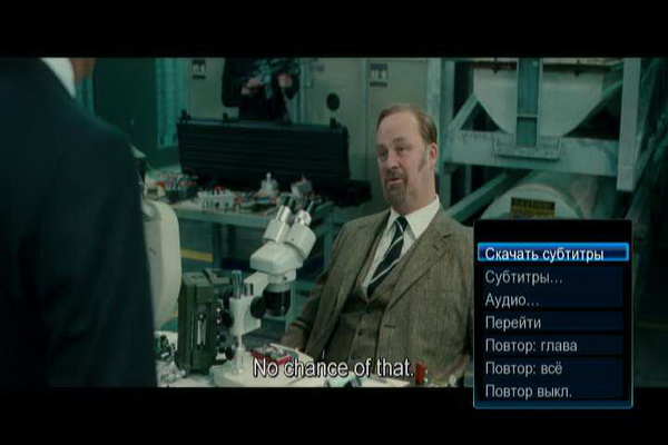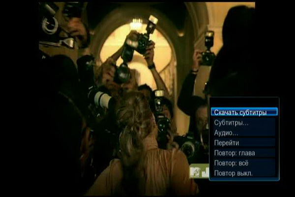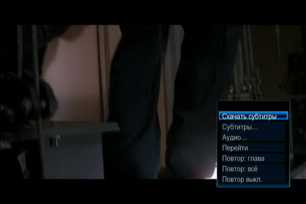 По клавише меню доступен вот такой список: скачать субтитры, выбор субтитров, аудиотреков, перейти, виды повторов.