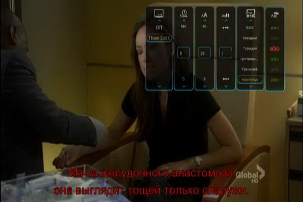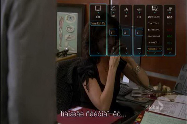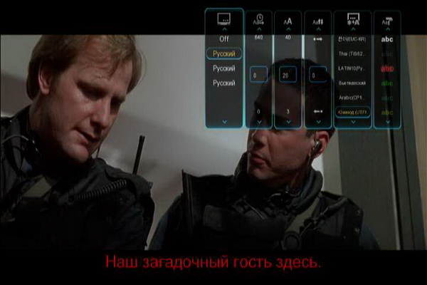 Проверил, как подцепляются дорожки субтитров - сначала они выдавались не в нужной кодировке. Однако в случае внешних субтитров, оказывается, тут доступно такое количество настроек, что можно и кодировку выбрать, и задать кучу параметров отображения субтитров - цвет, сдвиг, размер и так далее.