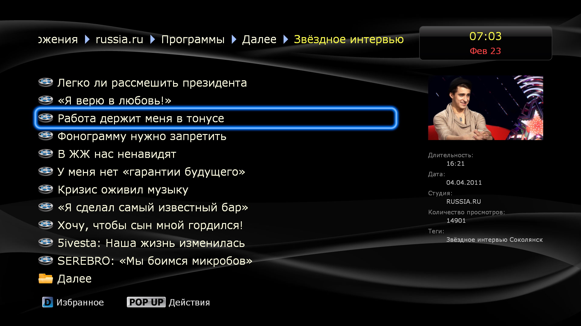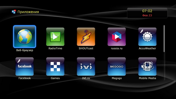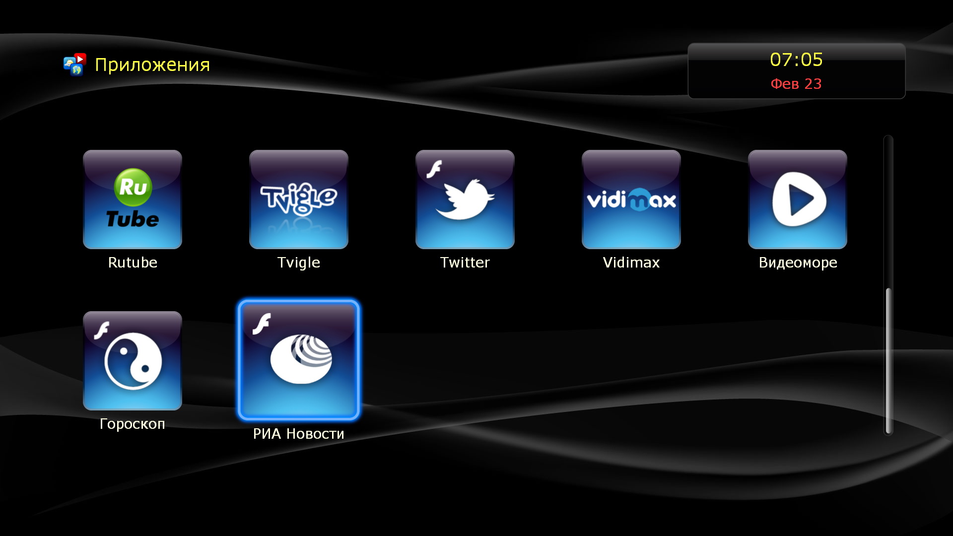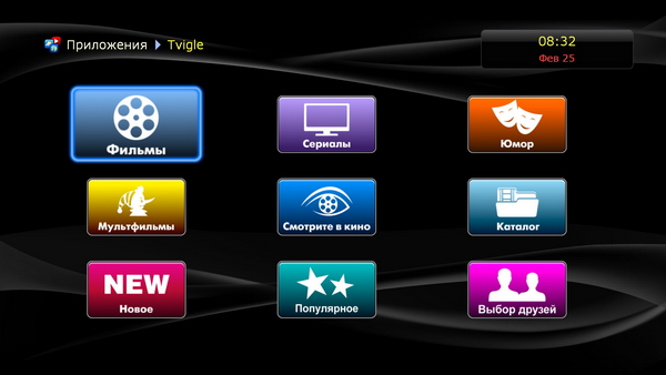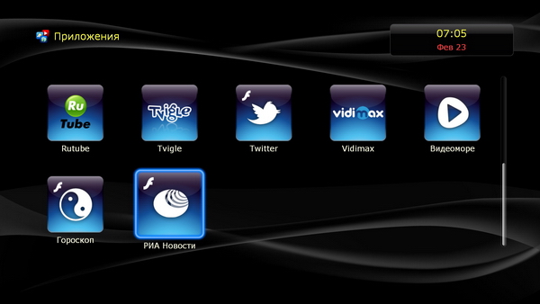 Вторая половина приложений - канал Rutube, Twitter, мощный онлайновый сервис Tvigle и так далее.
