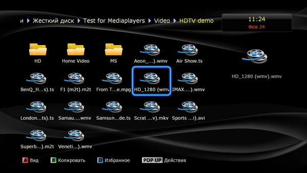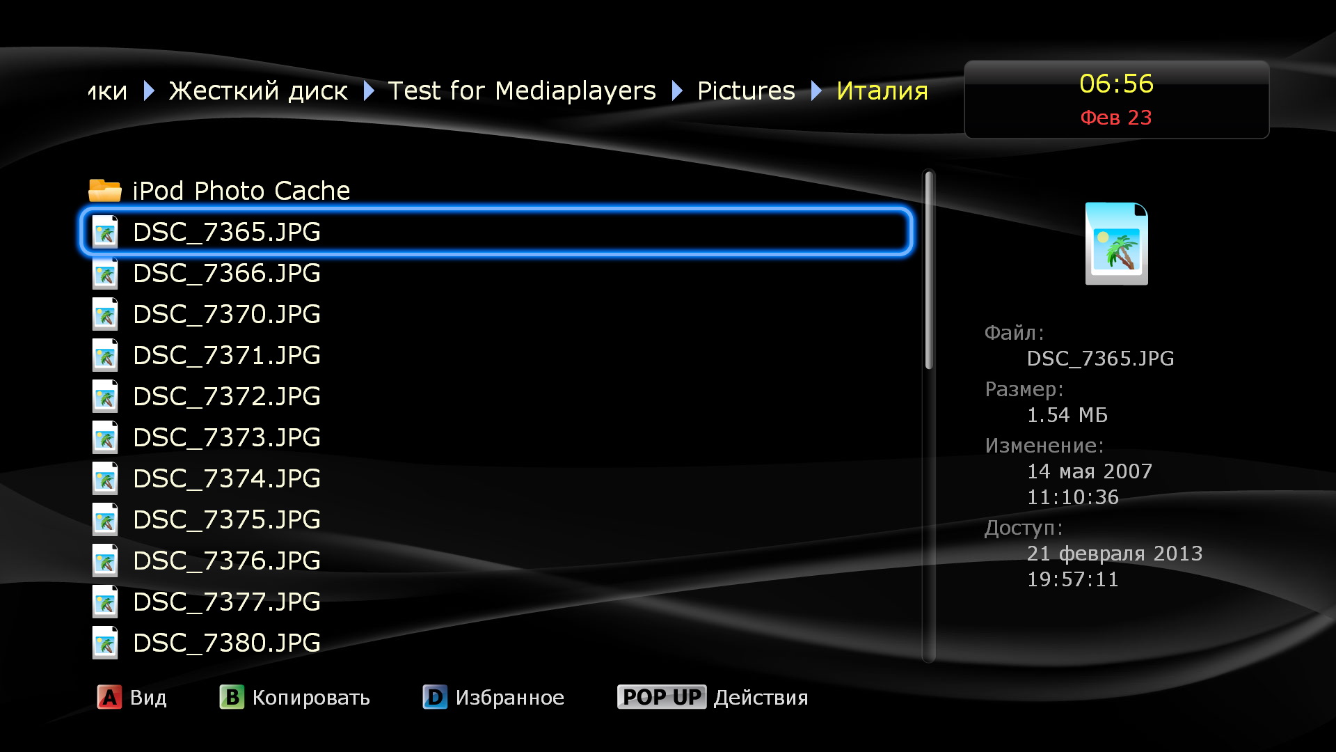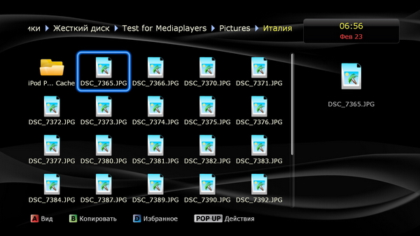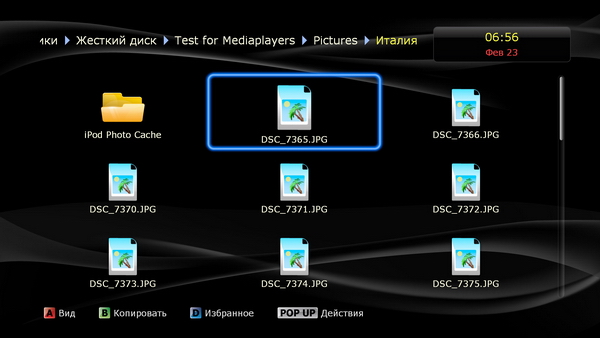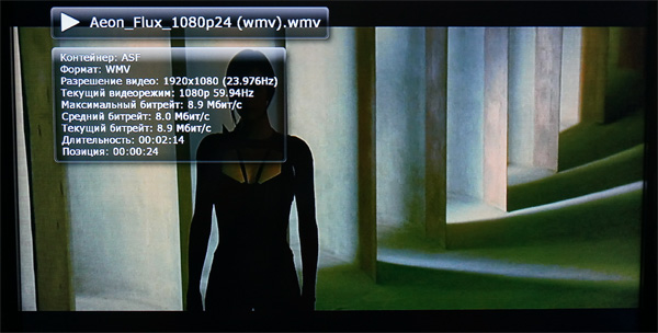 Кроме того, на уже вставленный диск можно закачать данные по Wi-Fi или через проводную сеть. Максимальная скорость Wi-Fi по протоколу 802.11n здесь составила примерно 2 мегабайта в секунду, то есть скоростями 802.11n тут и не пахнет - по этому протоколу скорость должна быть равна 7-8 мегабайтам в секунду. Причем тестирование проводилось при нахождении плеера от роутера на расстоянии где-то 30 сантиметров. (Впрочем, тут могла все-таки дурить прошивка роутера, потому что в последнее время с Wi-Fi начались какие-то проблемы, с которыми я еще не разбирался.)
