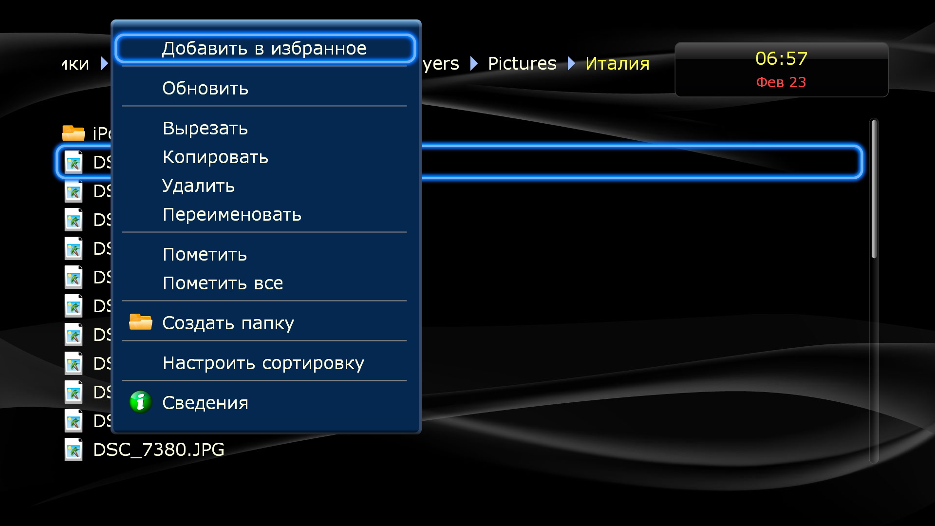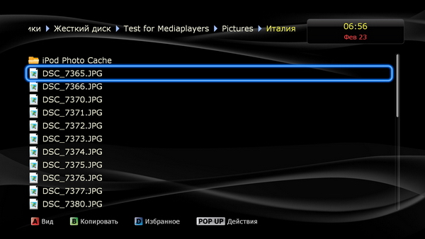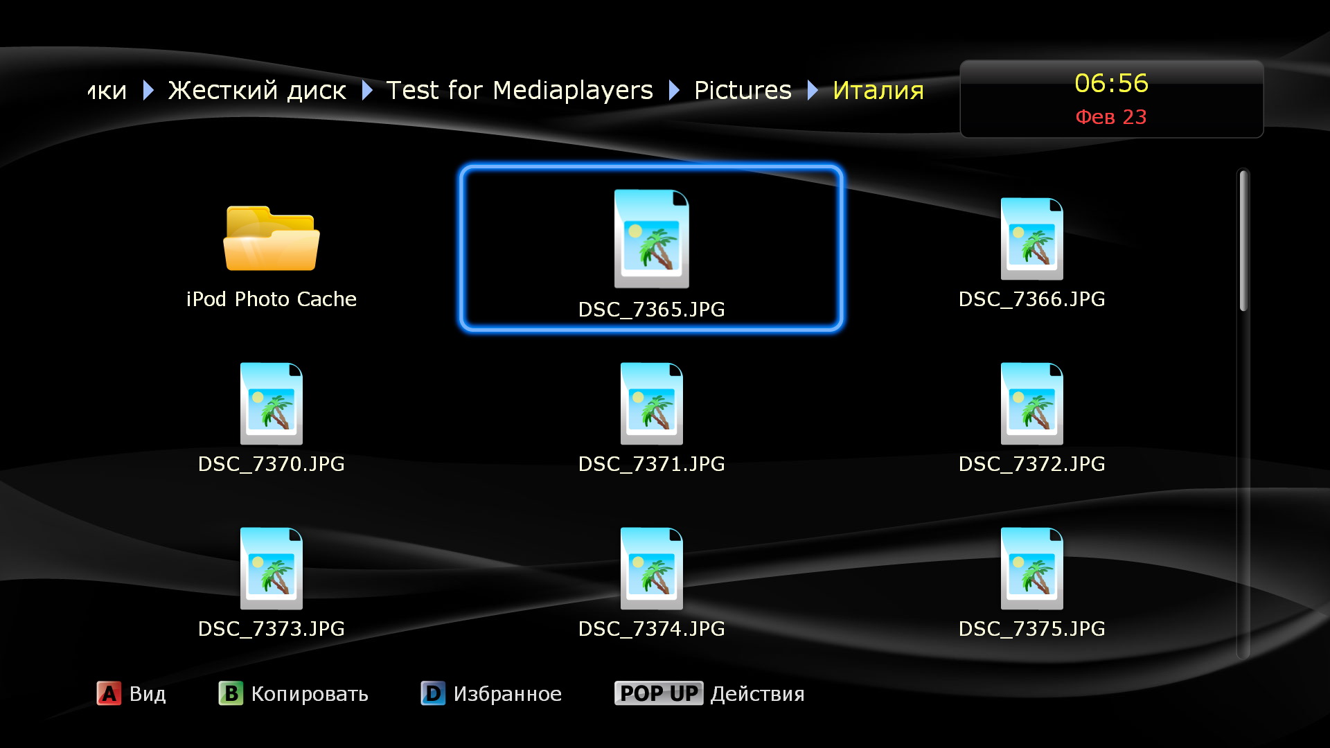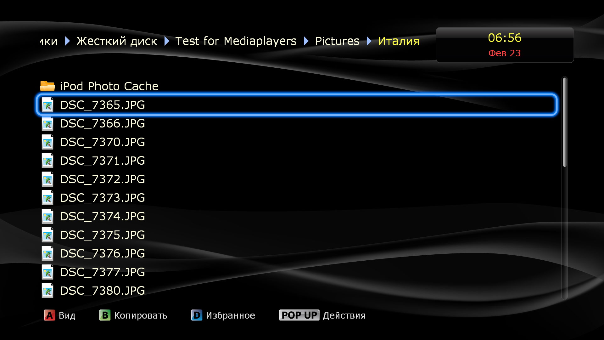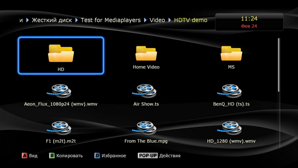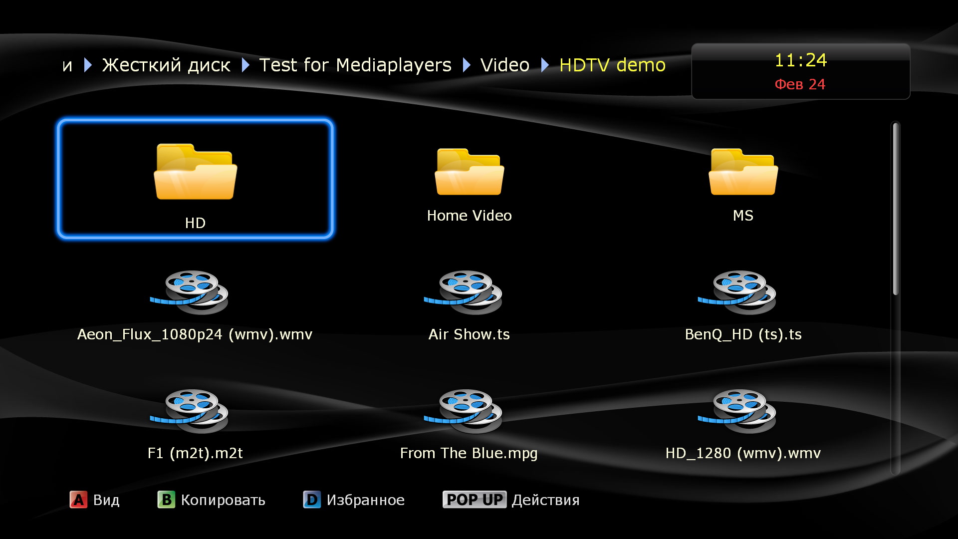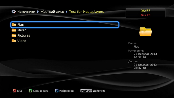 Заходим на установленный в системе жесткий диск с медиаданными. Плеер понимает файловые системы NTFS, FAT16/FAT32 и EXT2/EXT3, так что диск можно сначала просто записать на компьютере, а потом вставлять в плеер.