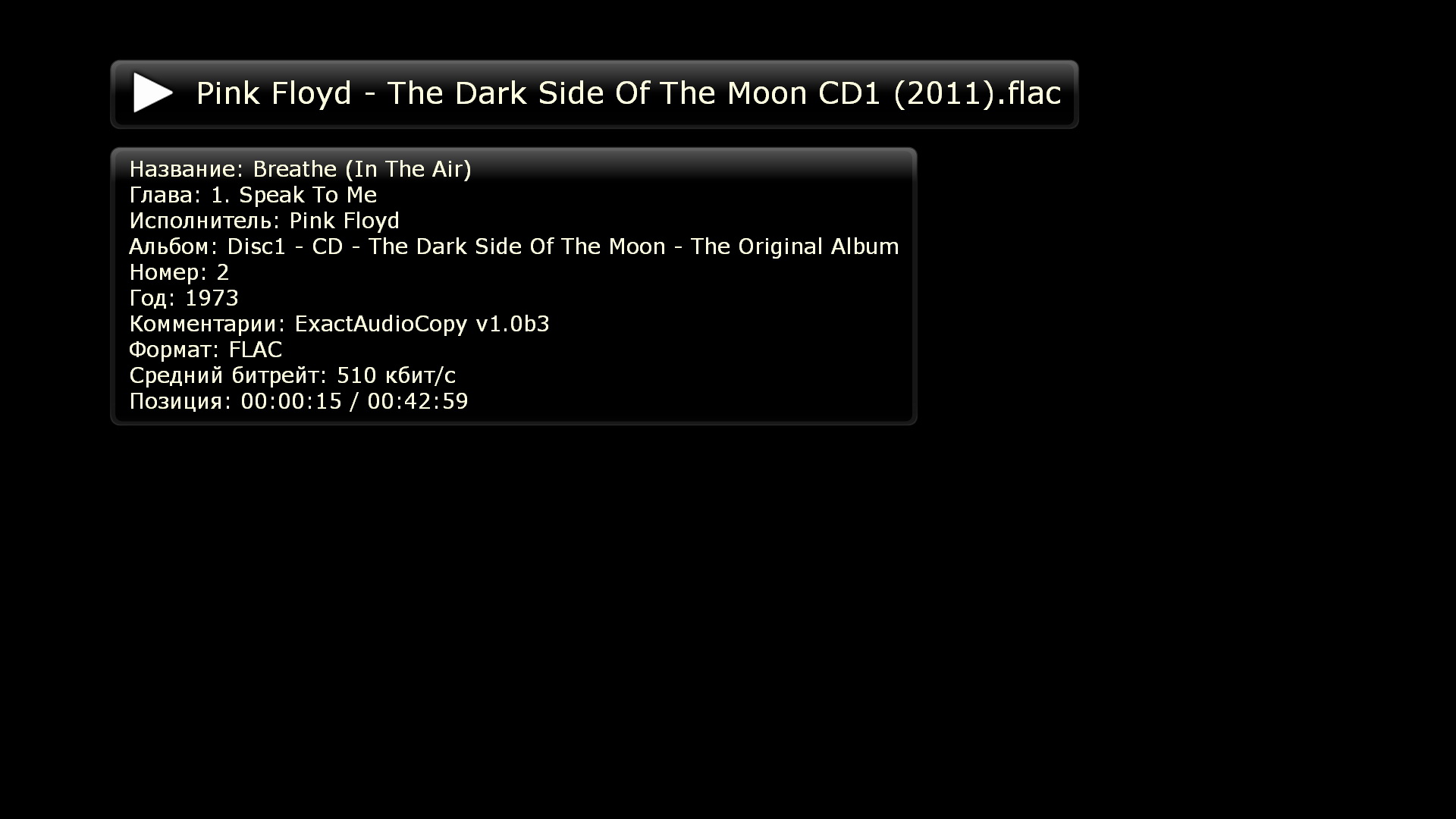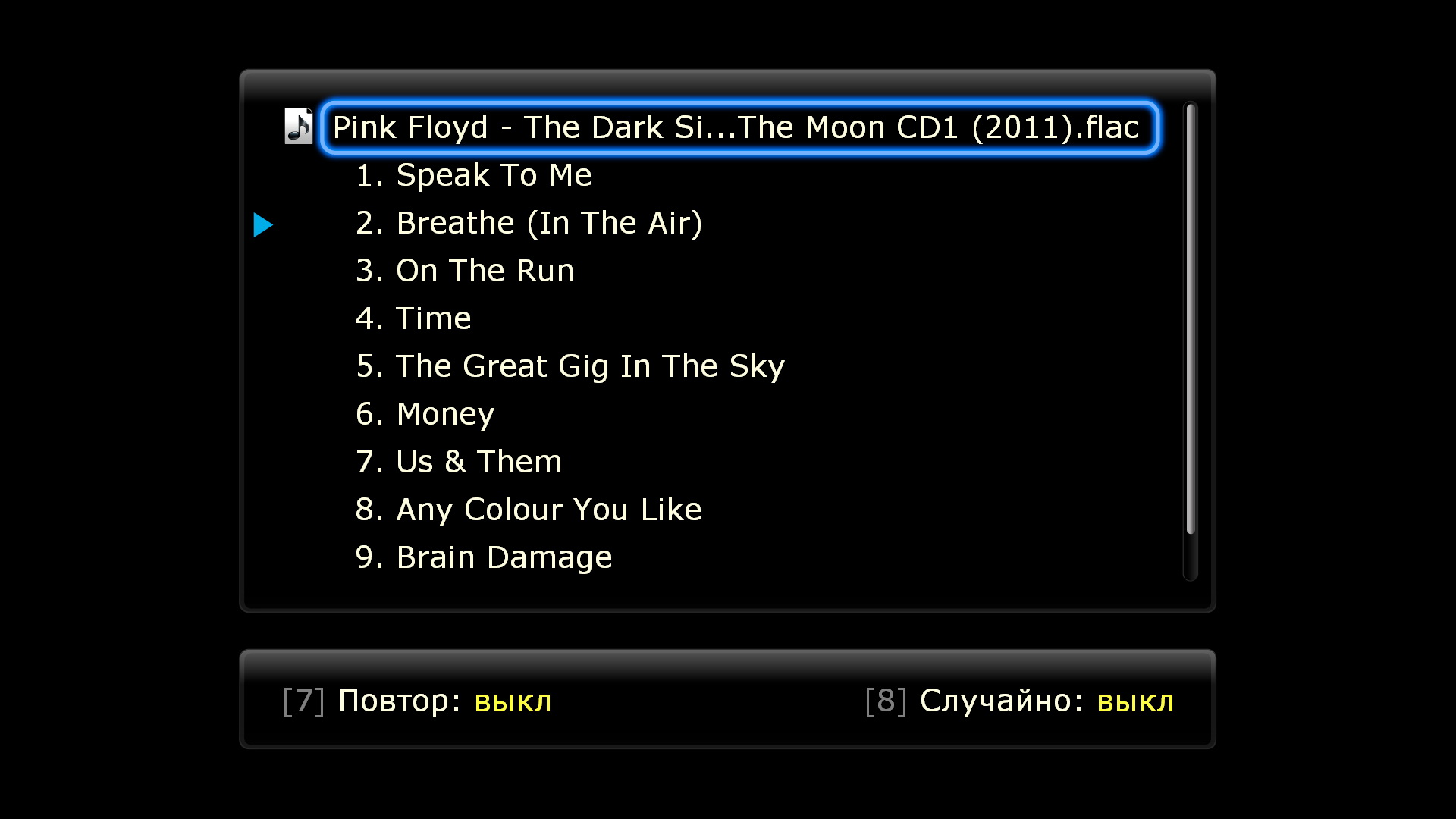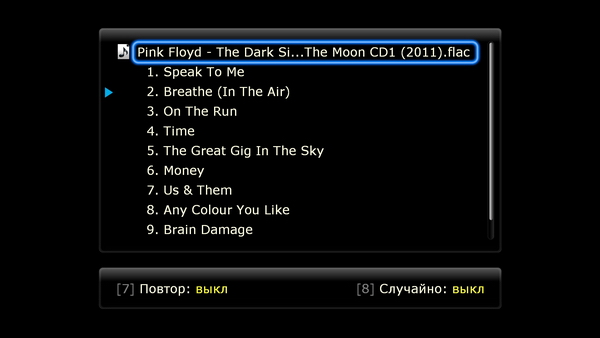 По клавише Enter (или из меню Pop Up) появляется список воспроизведения. Это особенно удобно для форматов, где в один файл может быть записан весь альбом (как, например, во FLAC).