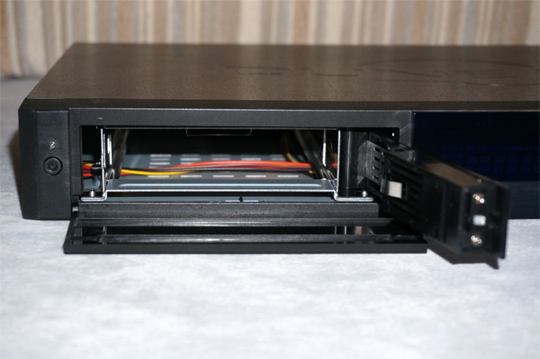 Дизайн у Dune HD Base 3D сделан в традиционной манере: строгий черный параллелепипед. На передней панели слева - отсек под жесткий диск (с горячей заменой). В центре - дисплей.