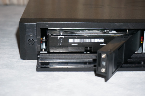 У отсека для жесткого диска откидывается верхняя крышка, под ней - крышка отсека с защелкой.