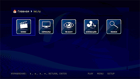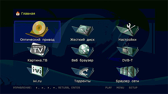 Главная страница не особенно изменилась по сравнению с Dune BD Prime. Интерфейс все тот же - большие удобные пиктограммы.