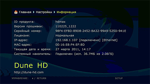 Так что по сравнению с Dune HD Max только "горячая" замена диска появилась и больше я не увидел разницы. Если настроен сетевой доступ к папкам компьютера, то необходимость в подключении диска отпадает.