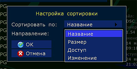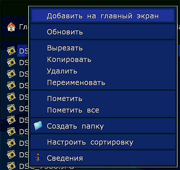 По кнопке Menu доступны всякие файловые операции.