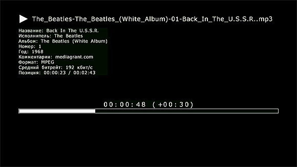 При воспроизведении трека с помощью пульта можно перемещаться на различные временные метки.
