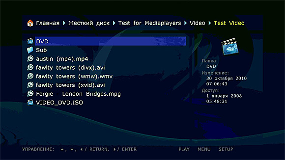 Далее ко мне приехал на тест Dune BD Prime, и вот тут имя Dune резко реабилитировалось. Потому что Dune BD Prime воспроизводил всё на свете, структуры Blu-ray полноценно воспроизводил как BR-диски, имел удобный и приличный интерфейс - словом, я тогда тут же приобрел себе тот экземпляр, который тестировал, и он у меня счастливо пашет до сих пор - вот как-то пока не нашел я более удобного варианта.