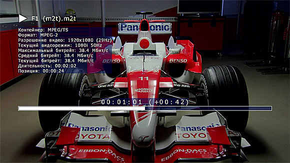 Форматы - MP3, WMA, MKV, AVCHD, H.264, VC-1, MPEG2, MPEG4, MPEG4 HD, DivX, XviD, WMV HD, JPEG