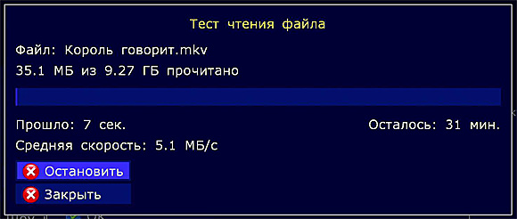 Кстати, в "Сведениях" есть интересный пункт - "Тест чтения". Очень удобно для использования сети - проверить сразу, потянет ли плеер нужный ролик или нет.