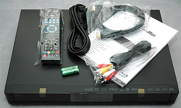 В комплектацию кроме самого плеера входят: сетевой шнур, HDMI-кабель, пульт с батарейками, аудиовидеокабель, инструкция.