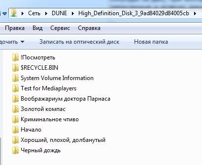 Содержимое жесткого диска в Dune