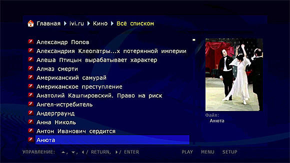 Навигация - точно такая же, как на BR-диске: переход по главам туда-сюда, ускоренный просмотр туда-сюда.