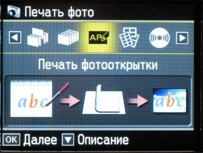 Из экзотики - специальная обработка PhotoEnhance (коррекция цвета, обработка портрета, пейзажа, размытый фокус, сепия, стилизация цифровых фотографий под пленочные), исправление эффекта "красных глаз", тихий режим (чтобы принтер печатал практически бесшумно).