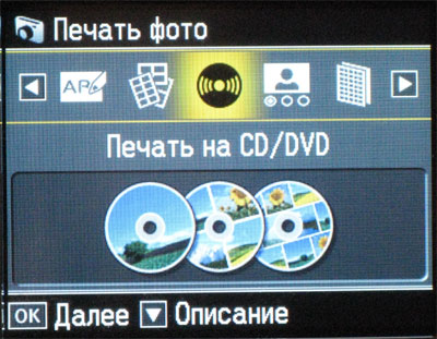 К моей радости выяснилось, что здесь все делается значительно более элегантно. Чтобы печатать на диске, нужно нажать специальную кнопку - появляется встроенный лоток для компактов. После этого панель управления МФУ поднимается, в соответствующее углубление лотка вкладывается болванка и дается команда печатать.