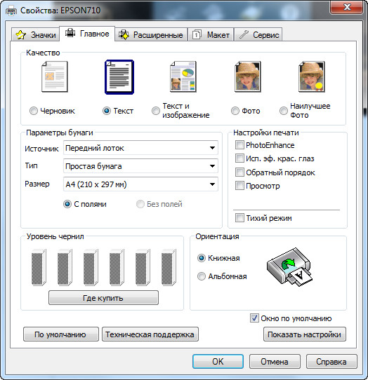 С компьютера все печатается без проблем - настройки печати Epson предлагает разнообразные и продвинутые.