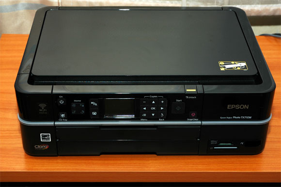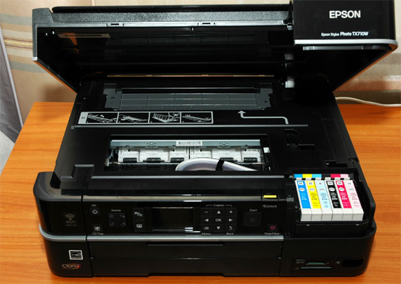 Итак, Epson Stylus Photo TX710W. Это многофункциональное устройство (МФУ): шестицветный струйный принтер, сканер, копир, кардридер.