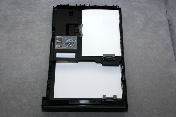 Лоток устроен следующим образом: отделение для фотобумаги (до 13×18 см) располагается над лотком А4. Принтер сам понимает, из какого лотка засасывать бумагу - по выбранному формату.