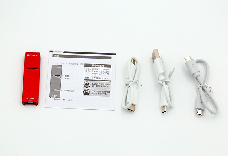 Внутри - усилитель, инструкция на китайском и английском, три очень полезных кабеля: microUSB-USB 2.0, microUSB-microUSB, microUSB-Type-C. То есть под все случаи жизни: ноутбуки/ПК, смартфоны-планшеты с microUSB и Type-C. Это очень даже хорошо.