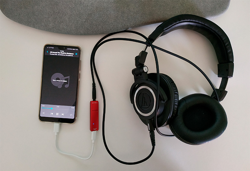 У меня есть многофункциональное устройство Sound Blaster E5, которое в том числе может служить и в качестве ЦАП с усилителем, однако оно довольно большое (размером с толстую пачку сигарет), требует зарядки, потому что у него свой аккумулятор и свое питание, ну и если с компьютером оно работает без сучка и задоринки, то при сопряжении со смартфоном/планшетом все время приходится проделывать какие-то танцы с бубном, и это сильно раздражало. Кроме того, использовать со смартфоном/планшетом такую здоровую бандуру просто неудобно!