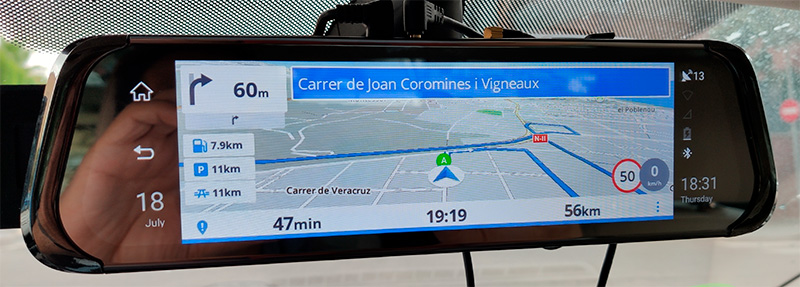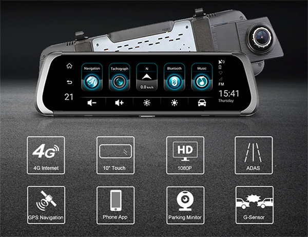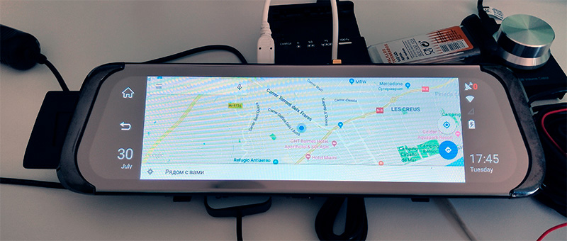 У меня на обзорах было много самых разных видеорегистраторов, но тот, о котором ниже пойдет речь, пожалуй, самый необычный и навороченный. Потому что он, во-первых, двухкамерный, а во-вторых, имеет встроенный в зеркало заднего вида специализированный планшет с сенсорным дисплеем, в котором есть навигация, вывод изображений с камер, функции предупреждения об опасности и выходе из полосы движения и даже функция ассистента парковки при движении автомобиля назад.