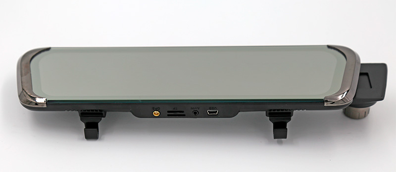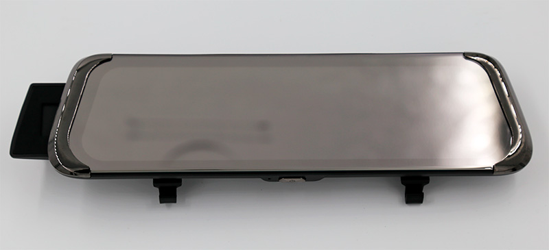 Видеорегистратор сделан в формате зеркала заднего вида. На нижнем торце расположена кнопка питания.