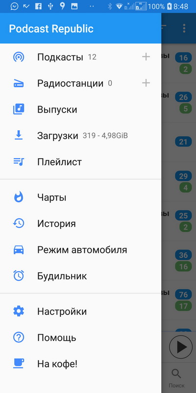 Я часто слушаю подкасты в автомобиле или на прогулке, так что для этого нужна продвинутая программа. Много лет использовал BeyondPod, но она много лет планомерно портилась, пока не пришла в полнейшее ничтожество. Я перебрал с десяток популярных приложений и в результате остановился на Podcast Republic. Удобная, продвинутая, работает с радиостанциями, имеет режим автомобиля - просто класс!