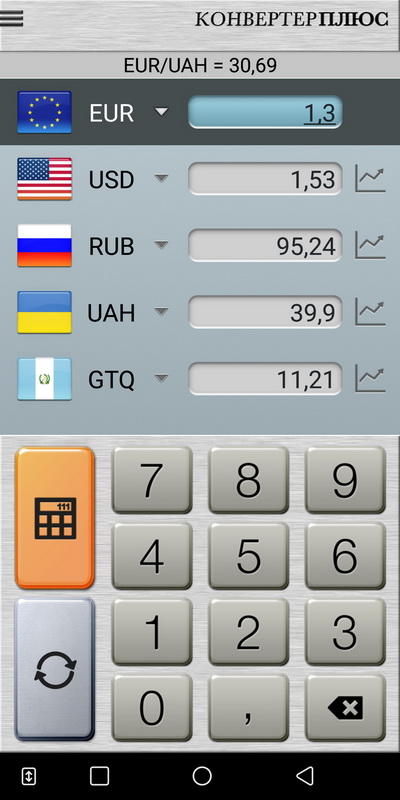 Рекомендую вот этот конвертер, встроенный калькулятор работает отлично и можно выбирать источник откуда брать курсы валют.