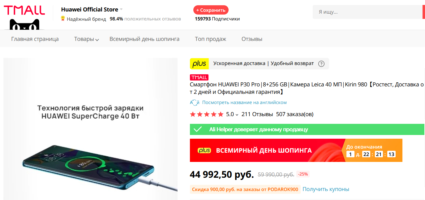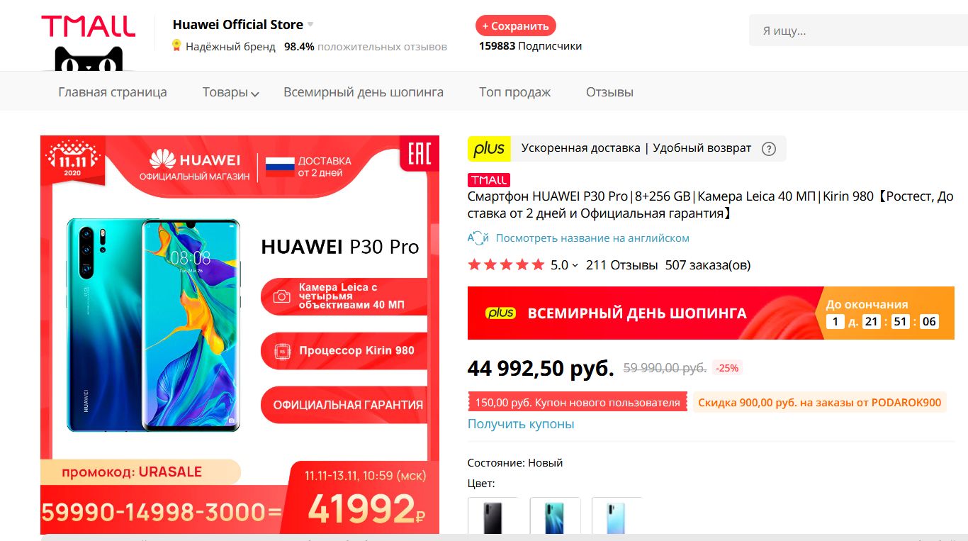 Бомба 2019 года суперфлагман Huawei P30 Pro еще много где продается, его сейчас можно купить за 45 тысяч, и это очень хороший вариант за такие деньги! Приложения Google в нем, разумеется, установлены, так как смартфон выпущен до санкций.