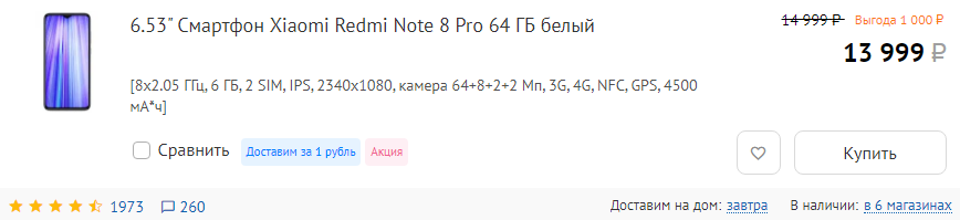 Герой прошлого года Xiaomi Redmi Note 8 Pro по-прежнему актуален и уже перешел в данную категорию - его уже можно купить за 15-16 тысяч рублей.