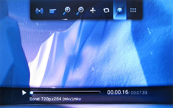 Просмотр обычного видео. Погонял плеер на различных видах обычного разрешения. Играет все без каких-либо проблем - WMV, DiVX и XViD в AVI, MKV, MPEG-2. Отдельно лежащие субтитры в формате SRT понимает (разумеется, при совпадении имени файла субтитров с именем видеотрека). Образы DVD в формате ISO понимает и воспроизводит, но с некоторыми ограничениями - просто запускается первый VOB, так что меню вам будет недоступно. Папку с обычным DVD прочитал также кривовато - не понимает IFO, поэтому выводит список только VOB, где нужно выбрать первый и запустить. Слава богу, что при этом остальные VOB воспроизводятся автоматом.