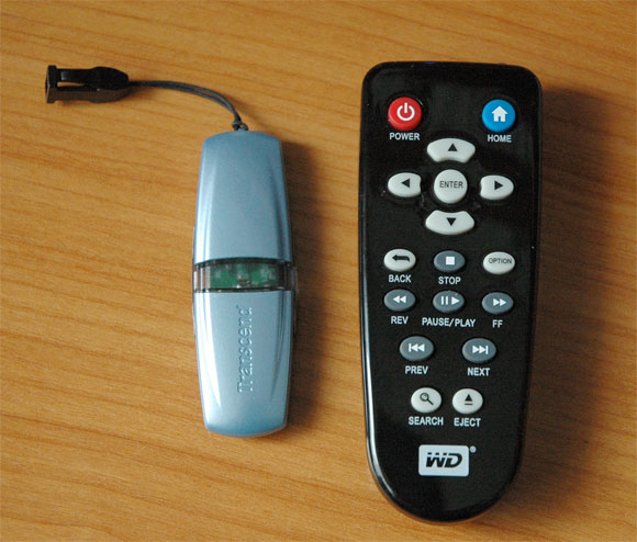По форумам гуляли зловещие слухи о том, что WD TV, мол, понимает только WD-устройства, но это точно не так - я специально не поленился и подключил к нему какую-то совершенно левую коробку с 3,5-дюймовым диском Seagate внутри - прочитался как миленький. Также прочитались двухдюймовый диск Samsung без своего питания и обычная флешка на 8 гигабайт.