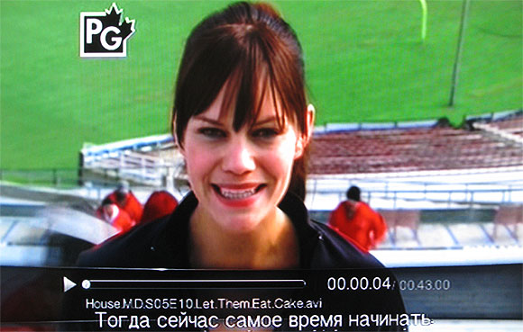 При просмотре High Definition серьезно не понравилось только одно: плеер не умеет перескакивать на заданное количество минут. Перемотку от 2х до 16х он делает, место, на котором просмотр был остановлен, запоминает. А вот перемещение по минутам и часам отсутствует. Причем на пульте есть соответствующие клавиши перемещения, как на пультах других плееров, но при их нажатии появляется значок "эта функция не работает". (То же самое касается и роликов обычного разрешения.)