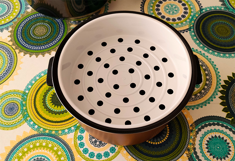 В задней части мультиварки есть съемный контейнер для конденсата.