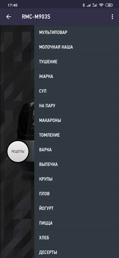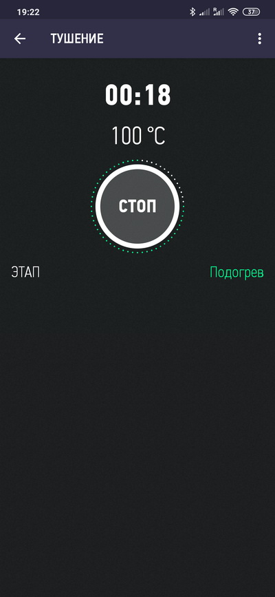 Ну и в процессе приготовления, если вы находитесь недалеко от устройства (смартфон подключается по Bluetooth), в приложении вы можете посмотреть, сколько времени осталось.