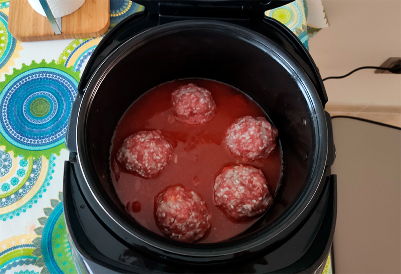 Ну и так как после фаршированных перцев еще осталось немного фарша, а в чаше скопился отличный томатный соус, я в нем на том же режиме еще приготовил тефтели, за которые Карлсон бы продал душу!