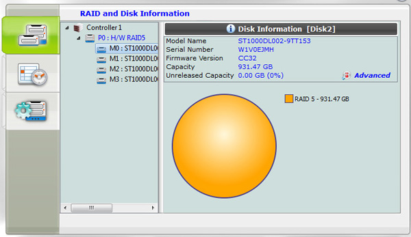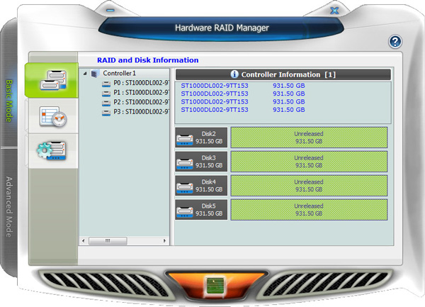Для этого вместе с накопителем идет диск, на котором содержится программа Hardware Raid Manager - версии под Windows и под Mac.