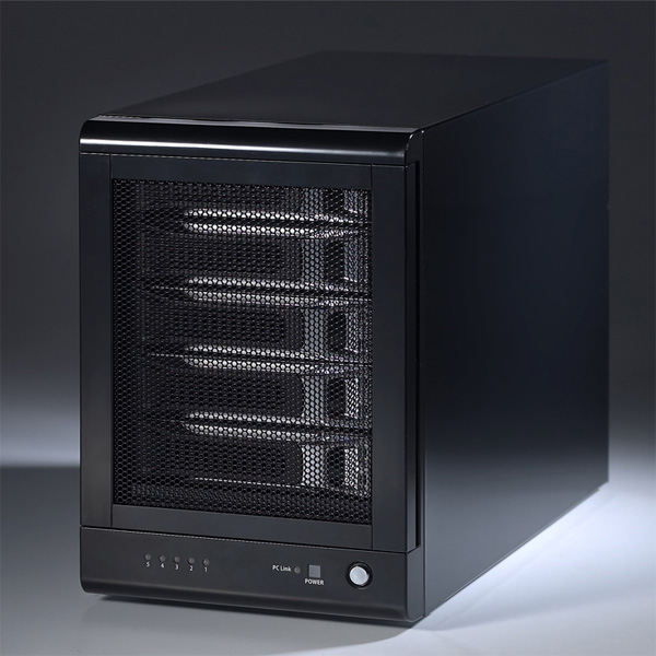 В чем же, вы спросите, тут цимес, когда сетевой накопитель - вроде как намного удобнее? С DAS идея в следующем. Это емкость для определенного количества дисков (в данном случае - до пяти), которая подключается напрямую к устройству (компьютеру, медиаплееру, ноутбуку, серверу, NAS) по скоростным интерфейсам eSATA илиUSB 3.0. В отличие от серверов и NAS данное устройство вообще не требует никакой настройки, администрирования и установки какого-то программного обеспечения. Просто в системе (или в медиаплеере) появляется новый накопитель (или накопители - в зависимости от выбранного типа), которым сразу можно пользоваться. Ну и при этом стоимость DAS - на уровне самых дешевых NAS, а суммарная емкость дисков при этом может быть заметно больше. Кроме того, DAS предоставляет самые разнообразные режимы использования установленных дисков, включая почти все возможные RAID-массивы, и при этом вам ничего не придется настраивать. (Почему и как - посмотрим чуть позже.)