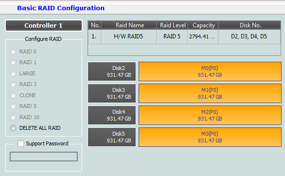 Здесь поддерживается аппаратный RAID-массив уровней 0, 1, 3, 5 и 10. Распишу, что это такое и для чего используется.