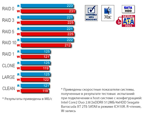 - Скорость чтения: более 220MБ/с в режиме RAID0