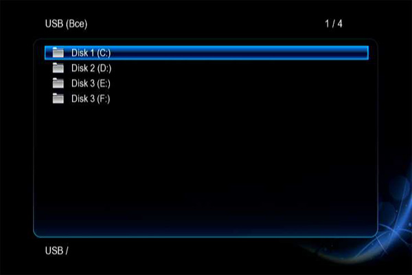 Медиаплеер определяет DAS как накопитель USB и показывает в нем все подключенные диски (режим Clean).