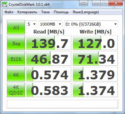 Тут, в принципе, можно было бы как следует развлечься, исследовав скорости чтения-записи всех режимов подключения, да еще и по двумя разным интерфейсам - по eSata и по USB 3.0. Собственно, в тестовых лабораториях именно так и развлекаются, публикуя после этого мегабайты самых разнообразных красивых табличек.