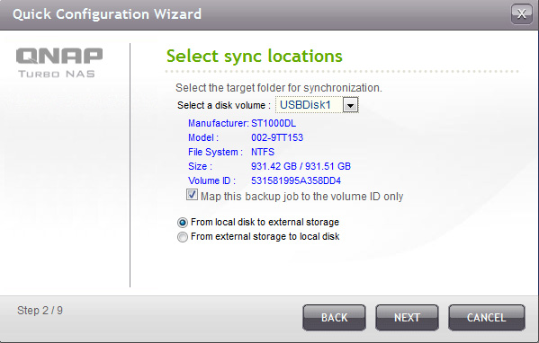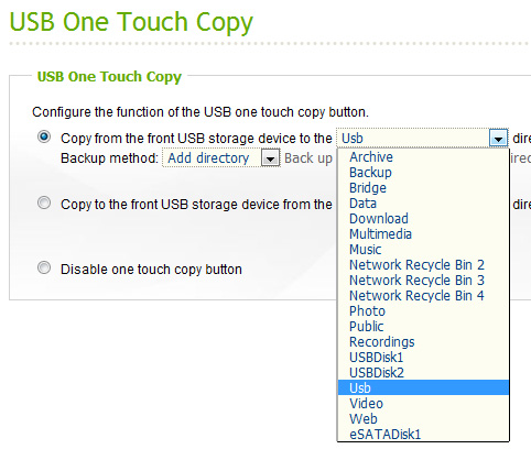 Задание подключенного диска в качестве хранилища для режима One Touch Copy (это когда в USB, расположенный на передней панели NAS, втыкается флешка или накопитель, с которых нужно сохранить все данные).