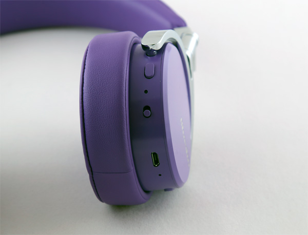 На правом наушнике: управляющая кнопка, световой индикатор режима, кнопка включения-выключения, порт microUSB, микрофон, качелька регулировки громкости.