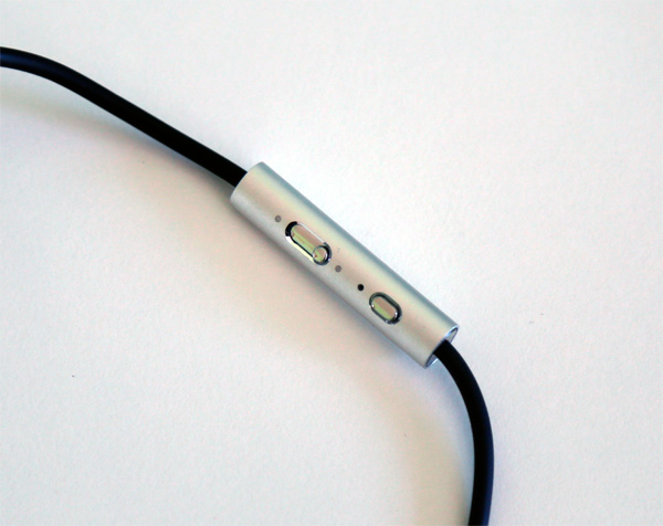 На пульте управления расположены универсальная кнопка, микрофон и ползунок регулировки громкости. Кнопка может отвечать на звонок и класть трубку в режиме гарнитуры, а в режиме прослушивания трека работает следующим образом: одно нажатие - на паузу или воспроизводить после паузы, двойное нажатие - следующий трек, тройное - предыдущий.
